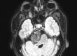 Η μαγνητική έδειξε ένα σχετικά μικρό ακουστικό νευρίνωμα αριστερά όμως η αιτία των προβλημάτων της ασθενούς ήταν ένα μηνιγγίωμα στην περιοχή της κορυφής του λιθοειδούς δεξιά το οποίο πίεζε το τρίδυμο νεύρο τόσο πριν όσο και εντός του Meckel’s cave (περιοχή του γαγγλίου του τριδύμου).