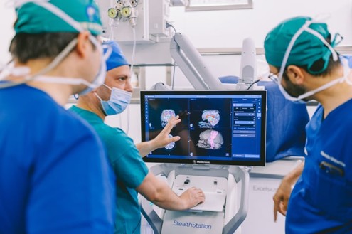 Τέτοιες περιπτώσεις είναι πχ. όταν ο όγκος εγκεφάλου είναι κοντά σε σε περιοχές του εγκεφάλου που ελέγχουν την όραση, την κίνηση ή την ομιλία. Ο χειρουργός με τη στενή συνεργασία του νευροψυχολόγου και του αναισθησιολόγου, υποβάλλει τον ασθενή σε ερωτήσεις και τέστ έτσι ώστε να παρακολουθεί τη λειτουργία περιοχών του εγκεφάλου κατά τη διάρκεια της επέμβασης (Εικόνα 1).